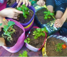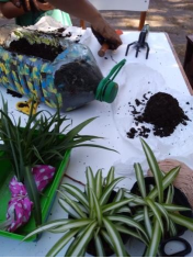 Carolina llegó temprano y emocionada de encontrarse con Fanny. Se sentaron juntas para realizar la actividad de preparación del sustrato. Fanny es una chica con trastorno de aprendizaje, tranquila y concentrada en las actividades. Carolina expresó “sentir asco” de tocar el sustrato con sus manos, por lo que utilizó una herramienta. Las TH hablaron de la importancia y beneficios de tocar la tierra con las manos. Fanny motivó a Carolina a tocar la tierra; mientras lo hacía, decía: “no puedo creer estar haciendo esto!”, con tono divertido. Realizó la actividad, con muchos momentos de distracción, y sin parar de hablar. Las TH redirigían su atención constantemente hacia la tarea. Los otros participantes también la guiaban, de manera espontánea y respetuosa. Carolina se disculpaba demostrando comprensión y aceptación.