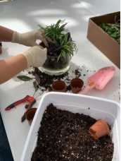 Una actividad muy popular entre los participantes es la propagación y el trasplante. También el cultivo de plantas mediante un sistema hidropónico en el que las plántulas crecen en arcilla expandida, en lugar de tierra.